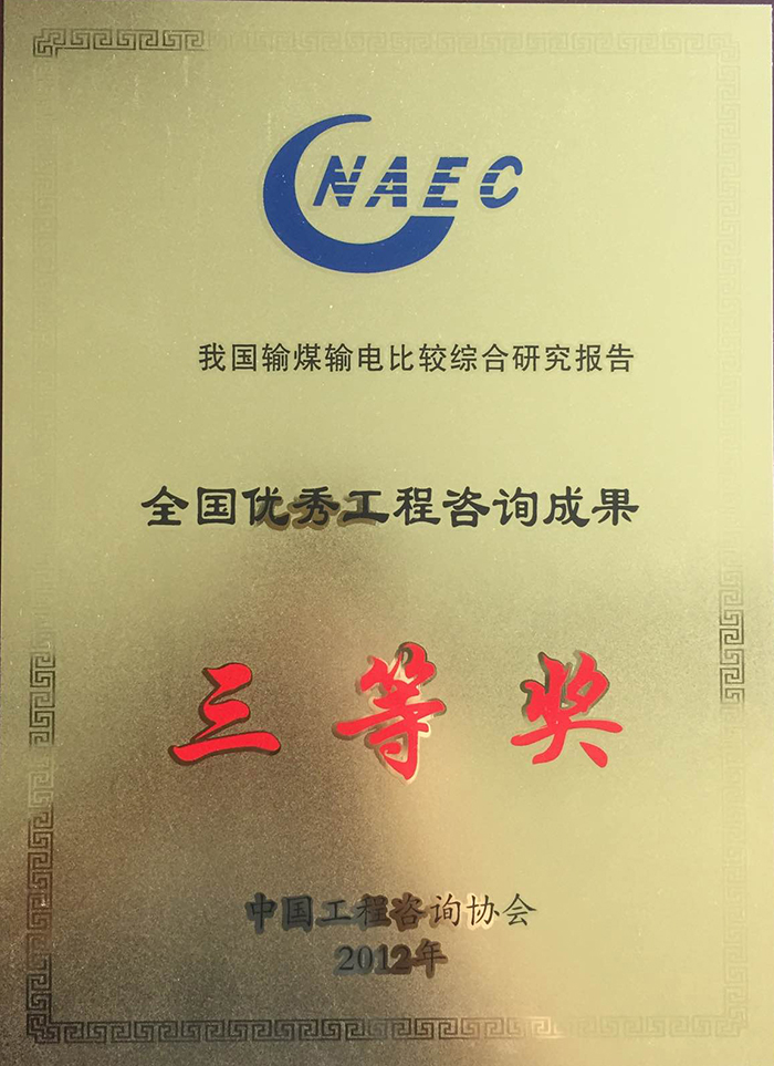 全國(guó)優(yōu)秀工程咨詢成果三等獎(jiǎng)(2012年)