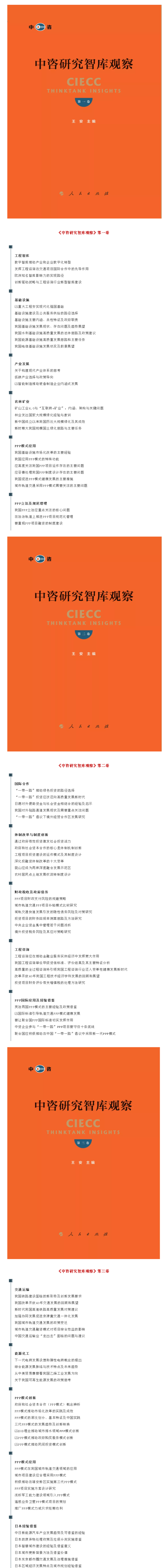 《中咨研究智庫觀察》第一批圖書(1-3卷)于2020年初由人民出版社正式出版發(fā)行,收錄了2018年1月至2019年10月在“中咨研究”公眾號刊發(fā)的85篇精選文章,內容涵蓋工程咨詢、工程智庫、基礎設施、產(chǎn)業(yè)發(fā)展、農(nóng)林礦業(yè)、能源化工、PPP模式,投融資體制改革、財政稅收與政府債務、國際合作、日本經(jīng)驗借鑒等領域。