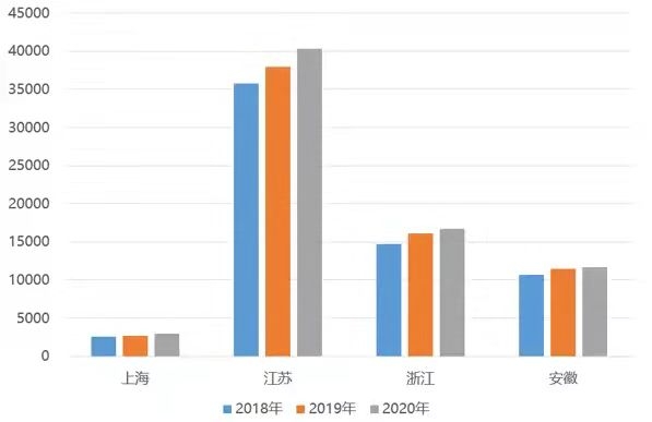 摘要:長江三角洲地區(qū)在我國的經(jīng)濟(jì)社會(huì)發(fā)展中發(fā)揮著重要引領(lǐng)和支撐作用,黨中央國務(wù)院對(duì)促進(jìn)長三角地區(qū)一體化發(fā)展高度重視,提出打造“面向全球、輻射亞太、引領(lǐng)全國的世界級(jí)城市群”的戰(zhàn)略要求。本文在對(duì)長三角地區(qū)范圍內(nèi)的上海市、浙江省、江蘇省、安徽省經(jīng)濟(jì)發(fā)展水平綜合對(duì)比的基礎(chǔ)上,分析了長三角經(jīng)濟(jì)增長的三大動(dòng)能情況,最后提出了長三角更高質(zhì)量一體化發(fā)展的展望。 關(guān)鍵字:長三角;區(qū)域經(jīng)濟(jì);一體化發(fā)展 一、長三角區(qū)域經(jīng)濟(jì)發(fā)展水平對(duì)比 2020年,長江三角洲地區(qū)一市三?。ㄉ虾J小⒔K省、浙江省、安徽?。┙?jīng)濟(jì)總量占全國經(jīng)濟(jì)的比重接近四分之一,進(jìn)一步凸顯對(duì)全國經(jīng)濟(jì)的支撐引領(lǐng)作用。面對(duì)國內(nèi)外風(fēng)險(xiǎn)挑戰(zhàn)明顯上升和新冠疫情爆發(fā)的復(fù)雜局面,長三角地區(qū)在“共抓大保護(hù)、不搞大開發(fā)”精神指引下,堅(jiān)持穩(wěn)中求進(jìn)工作總基調(diào),積極落實(shí)高質(zhì)量發(fā)展總要求,經(jīng)濟(jì)增長保持韌性,創(chuàng)新驅(qū)動(dòng)力穩(wěn)步提升,圍繞一體化和高質(zhì)量兩大關(guān)鍵,長三角一體化發(fā)展進(jìn)入了新階段。 2021年,長三角地區(qū)經(jīng)濟(jì)增長繼續(xù)保持良好的態(tài)勢(shì),地區(qū)經(jīng)濟(jì)總量和人均經(jīng)濟(jì)規(guī)模持續(xù)擴(kuò)大,在全國經(jīng)濟(jì)發(fā)展格局中的重要性進(jìn)一步凸顯,經(jīng)濟(jì)發(fā)展質(zhì)量不斷提高,且省際經(jīng)濟(jì)發(fā)展的差距在逐步縮小。 (一)經(jīng)濟(jì)規(guī)模持續(xù)擴(kuò)大 2020年,受新冠疫情影響,長三角一市三省實(shí)現(xiàn)地區(qū)生產(chǎn)總值24.4萬億元,平均增速為3.2%,較2019年增速下降近一半。人均GDP達(dá)到114471元,同比增長2.4%,高出全國平均水平(72371元)近42100元,領(lǐng)先幅度進(jìn)一步擴(kuò)大。在4個(gè)省市中,GDP增速低于全國的只有上海市(1.7%),人均GDP規(guī)模低于全國水平的有安徽省??傮w來看,長三角地區(qū)經(jīng)濟(jì)實(shí)現(xiàn)了持續(xù)穩(wěn)定增長,人均經(jīng)濟(jì)規(guī)模繼續(xù)攀升,領(lǐng)先全國同期水平的幅度進(jìn)一步擴(kuò)大。 數(shù)據(jù)來源:根據(jù)長三角地區(qū)各省市統(tǒng)計(jì)年鑒及公報(bào)整理 圖1 2018-2020年長三角地區(qū)GDP和GDP增速情況 (二)產(chǎn)業(yè)結(jié)構(gòu)進(jìn)一步優(yōu)化 2020年,長三角地區(qū)生產(chǎn)總值占全國的比重達(dá)到24.1%,同比提升0.2個(gè)百分點(diǎn),在全國經(jīng)濟(jì)總量中的比重不斷上升。產(chǎn)業(yè)結(jié)構(gòu)進(jìn)一步優(yōu)化,第三產(chǎn)業(yè)占比均超過了50%,其中,服務(wù)業(yè)發(fā)展勢(shì)頭強(qiáng)勁,工業(yè)經(jīng)濟(jì)明顯好轉(zhuǎn),戰(zhàn)略性新興產(chǎn)業(yè)加速成長,重點(diǎn)行業(yè)表現(xiàn)突出。但省際之間產(chǎn)業(yè)結(jié)構(gòu)、產(chǎn)業(yè)體系和重點(diǎn)產(chǎn)業(yè)發(fā)展情況仍存在明顯的地區(qū)差異,其中,上海的第三產(chǎn)業(yè)比重超過70%,安徽的第三產(chǎn)業(yè)比重超過50%。 從各省市產(chǎn)業(yè)結(jié)構(gòu)比較來看,上海第三產(chǎn)業(yè)產(chǎn)值占比高出第二產(chǎn)業(yè)45.7個(gè)百分點(diǎn),第二產(chǎn)業(yè)占比不足30%,第一產(chǎn)業(yè)占比微乎其微,服務(wù)型經(jīng)濟(jì)主導(dǎo)的產(chǎn)業(yè)結(jié)構(gòu)特征極為明顯;浙江第一產(chǎn)業(yè)占比3.3%,第三產(chǎn)業(yè)占地區(qū)生產(chǎn)總值的比重高出第二產(chǎn)業(yè)10個(gè)百分點(diǎn)以上,形成典型的“三二一”型產(chǎn)業(yè)結(jié)構(gòu);江蘇第二產(chǎn)業(yè)比重與第三產(chǎn)業(yè)比重相差不大,呈現(xiàn)服務(wù)業(yè)與工業(yè)并重的產(chǎn)業(yè)格局;安徽產(chǎn)業(yè)結(jié)構(gòu)正處于服務(wù)業(yè)工業(yè)并重向“三二一”型產(chǎn)業(yè)結(jié)構(gòu)轉(zhuǎn)型的過程中。 數(shù)據(jù)來源:根據(jù)長三角地區(qū)各省市統(tǒng)計(jì)年鑒及公報(bào)整理 圖2 2019-2020年長三角地區(qū)三產(chǎn)結(jié)構(gòu)變化情況 (三)產(chǎn)業(yè)發(fā)展特色顯著 打造世界級(jí)產(chǎn)業(yè)集群和標(biāo)志性產(chǎn)業(yè)鏈,是長三角地區(qū)實(shí)現(xiàn)更高質(zhì)量一體化發(fā)展的重要內(nèi)容。2020年,長三角地區(qū)的服務(wù)業(yè)產(chǎn)值占比均超過了GDP的一半。上海服務(wù)業(yè)中增長最快的是信息傳輸、軟件和信息技術(shù)服務(wù)業(yè),增速接近20%;江蘇服務(wù)業(yè)中的金融、交通倉儲(chǔ)運(yùn)輸和郵政等增速明顯,互聯(lián)網(wǎng)及相關(guān)服務(wù)業(yè)增速最快;浙江以新產(chǎn)業(yè)、新業(yè)態(tài)、新模式為主要特征的“三新”經(jīng)濟(jì)增加值占GDP的25%以上;安徽以互聯(lián)網(wǎng)信息技術(shù)、商務(wù)服務(wù)等新興行業(yè)為代表的規(guī)模以上其他營利性服務(wù)業(yè)營業(yè)收入增長超過20%,帶動(dòng)優(yōu)勢(shì)凸顯。 2020年,長三角地區(qū)的工業(yè)經(jīng)濟(jì)發(fā)展均有所好轉(zhuǎn)。上海規(guī)模以上工業(yè)增加值比2019年