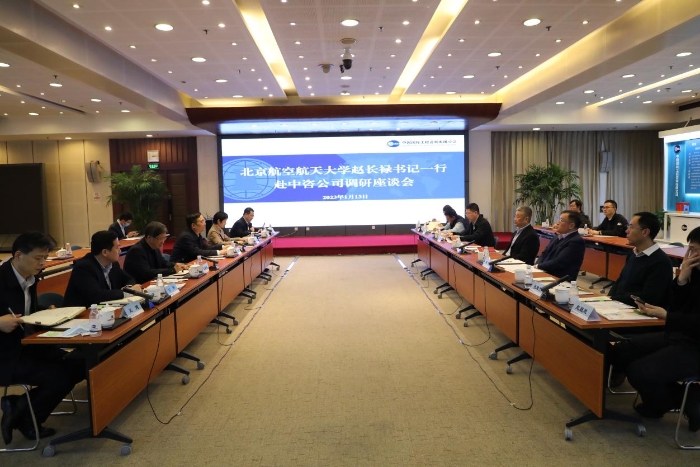 茍護(hù)生董事長(zhǎng)與北京航空航天大學(xué)黨委書(shū)記趙長(zhǎng)祿一行座談交流