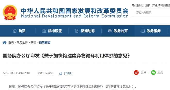 近日,國(guó)務(wù)院辦公廳印發(fā)《關(guān)于加快構(gòu)建廢棄物循環(huán)利用體系的意見(jiàn)》(國(guó)辦發(fā)〔2024〕7號(hào),以下簡(jiǎn)稱《意見(jiàn)》)。《意見(jiàn)》聚焦生產(chǎn)生活各領(lǐng)域的廢棄物,分類施策,明確了推進(jìn)廢棄物精細(xì)管理和有效回收、提高廢棄物資源化和再利用水平、加強(qiáng)重點(diǎn)廢棄物循環(huán)利用和培育壯大資源循環(huán)利用產(chǎn)業(yè)的重點(diǎn)任務(wù)和工作要求,指向明確、操作性強(qiáng)。《意見(jiàn)》的落地實(shí)施必將推動(dòng)資源節(jié)約集約高效利用,對(duì)提升廢棄物循環(huán)利用水平和協(xié)同推進(jìn)降碳、減污、擴(kuò)綠、增長(zhǎng)具有重要意義。